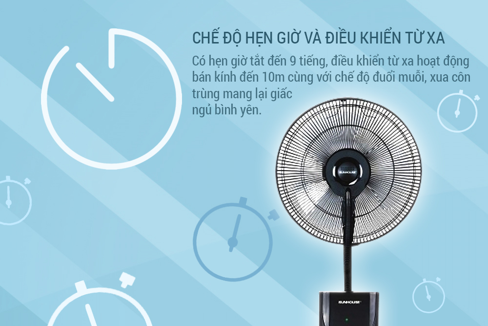 Quạt Sunhouse SHD7801 có chế độ hẹn giờ tắt đến 9 tiếng, điều khiển từ xa hoạt động bán kính 10m cùng với chế độ đuổi muỗi, xua côn trùng mang lại giấc ngủ yên bình cho gia đình bạn.