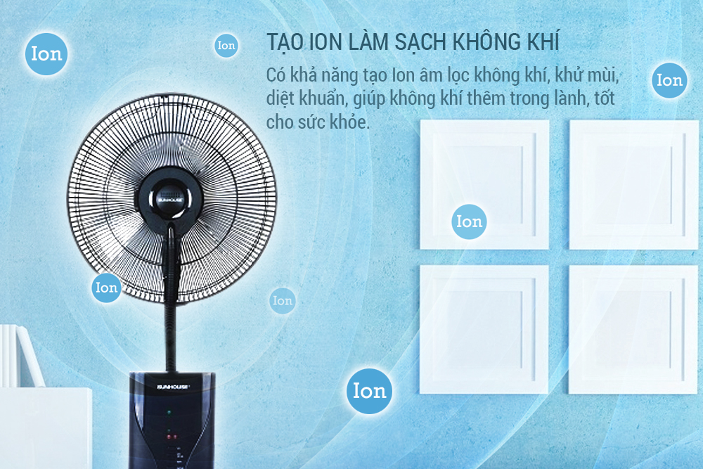 Có khả năng tạo ion âm lọc không khí, khử mùi, diệt khuẩn, giúp không khí thêm trong lành, tốt cho sức khoẻ. Quạt có 3 tốc độ gió tuỳ chỉnh là gió thường, gió tự nhiên và chế độ ru ngủ.