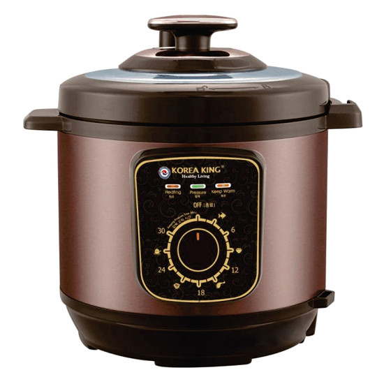Nồi áp suất điện Korea King KPRC - 6500M có kiểu dáng hiện đại, màu sắc sang trọng góp phần làm tăng nét đẹp không gian sử dụng. Thân nồi được làm từ chất liệu Inox cao cấp, chịu lực và chịu nhiệt tốt, có tuổi thọ cao và độ sáng bóng đẹp. Sản phẩm sở hữu thiết kế an toàn nhờ thiết bị an toàn trên nắp cùng với van điều tiết áp suất và nhiệt độ mang lại sự yên tâm cho người dùng trong quá trình sử dụng.