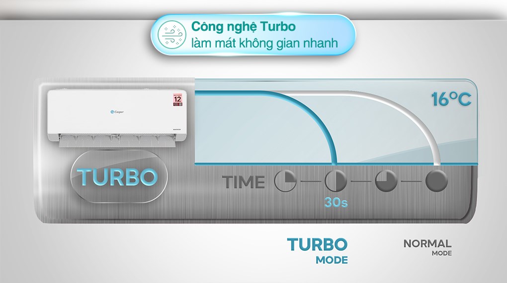 - Nhằm giúp bạn sở hữu không gian mát lạnh trong thời gian ngắn, khi mới bên ngoài về thì chế độ Turbo được kích hoạt sẽ giúp máy lạnh hoạt động với công suất lớn, nhờ đó làm lạnh nhanh không gian.