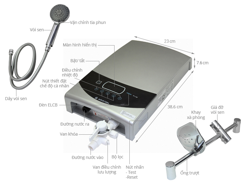 Với 5 kiểu phun khác nhau, vòi sen của máy nước nóng Ariston ST45PE-VN dễ dàng giúp người dùng tùy chỉnh các chế độ và sử dụng.
