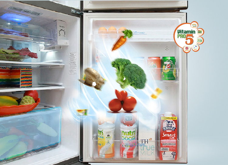 Tủ lạnh Inverter Aqua còn sử dụng luồng khí lạnh được tỏa đều theo nhiều hướng, lan tỏa đều giữa các ngăn, làm lạnh nhanh và hiệu quả, cho thực phẩm tươi ngon lâu hơn.