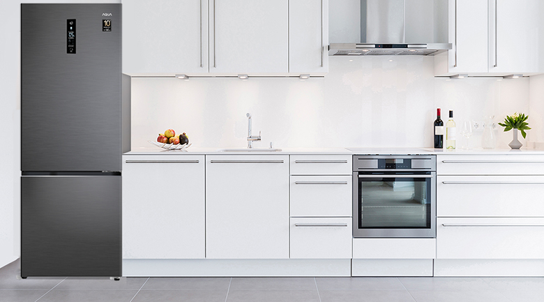 Tủ lạnh Aqua Inverter 292 lít AQR-B339MA(HB) không chỉ là nơi lưu trữ, bảo quản thực phẩm tươi ngon cho những bữa ăn đầy đủ dưỡng chất mà còn là món đồ nội thất tô điểm cho căn bếp của bạn. Cửa tủ mặt thép màu xám đen sang trọng, cùng đường nét hiện đại, tinh tế của chiếc tủ lạnh này chắc chắn sẽ làm hài lòng những người nội trợ khó tính nhất. Tủ lạnh 2 cửa này bố trí ngăn đá phía dưới thay vì ngăn đá trên như các dòng tủ lạnh thông thường. Thiết kế này vô cùng tiện lợi bởi ngăn mát là nơi được dùng thường xuyên hơn, người dùng sẽ không cần cúi người nhiều khi lấy thực phẩm.