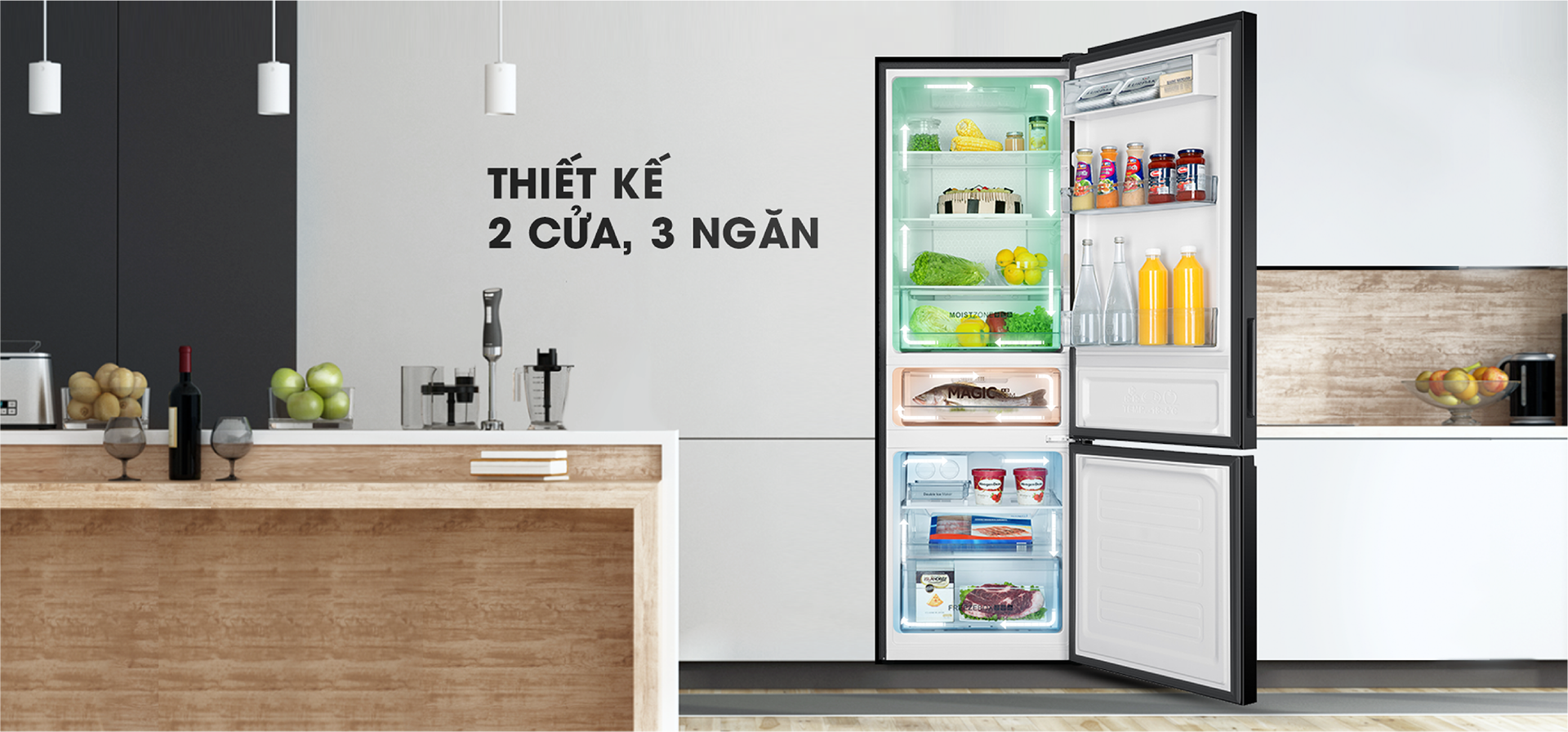 Thiết kế 2 cửa 3 ngăn tiện dụng