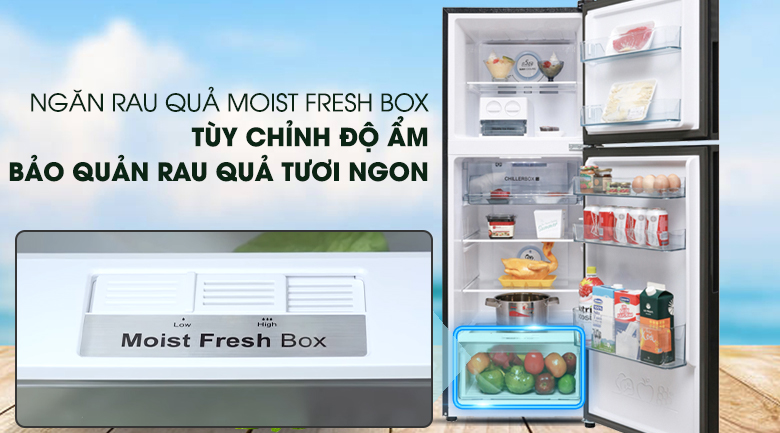 Chiếc tủ lạnh được trang bị ngăn Moist Zone có thể bảo quản rau củ luôn tươi ngon, mọng nước nhờ màng giữ ẩm HCS.