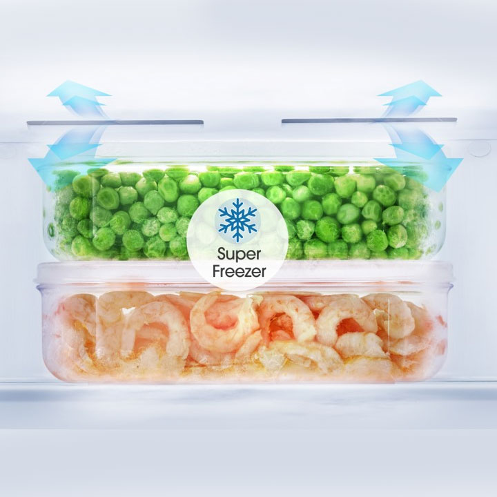 Với chế độ Super Cool, một luồng khí mát lạnh sẽ được thổi ra nhanh chóng, giúp cho thực phẩm hay đồ uống của bạn mát lạnh tức thì. Còn với Super Freeze thì việc cấp đông thực phẩm hay tạo ra đá lạnh chỉ diễn ra trong tích tắc bởi luồng khí mạnh mẽ sẽ được thổi thẳng trực tiếp vào tủ đông.