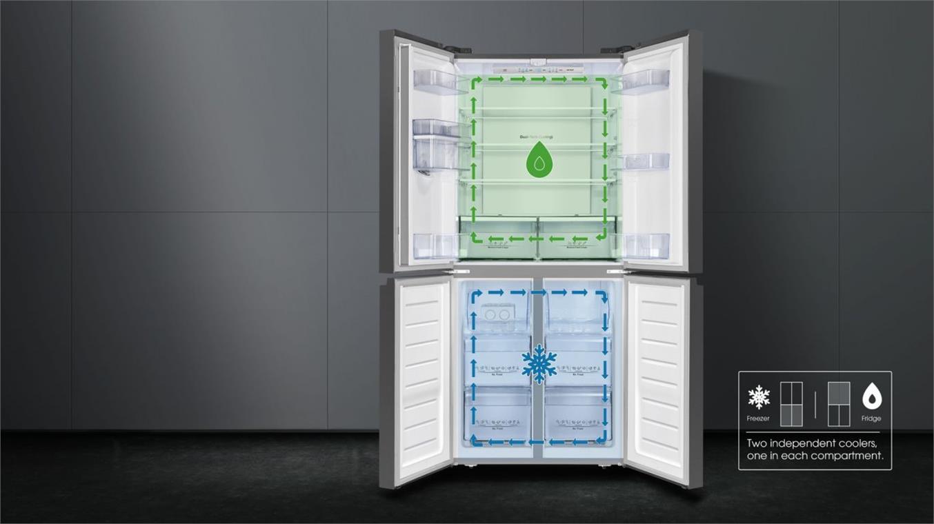 Thiết kế kĩ thuật với 2 dàn lạnh độc lập kết hợp cùng khả năng làm lạnh đa chiều giúp tối ưu khả năng lạnh nhanh, lạnh sâu và đặc biệt, hạn chế tối đa việc trộn lẫn mùi thực phẩm giữa thức ăn tươi và thực phẩm đông lạnh.