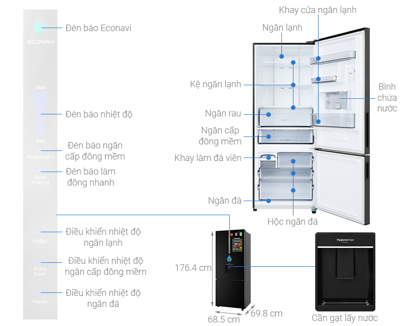 Công nghệ cảm biến Econavi với hệ thống cảm biến hiện đại, giúp tủ tự điều chỉnh để giữ độ lạnh phù hợp bảo quản thực phẩm tươi ngon mà vẫn tiết kiệm điện.