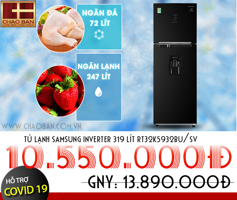 Dung tích tủ lạnh Samsung 319 lít sẽ đáp ứng tốt cho nhu cầu sử dụng của những gia đình có từ 3 đến 4 thành viên.