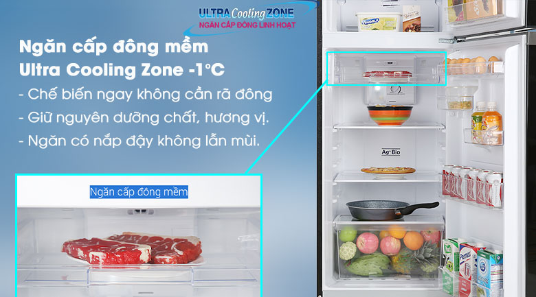 Lưu ý là ngăn cấp đông mềm Ultra Cooling Zone chỉ lưu trữ thực phẩm tươi ăn trong ngày, nếu bạn muốn để lâu hơn thì bạn nên trữ ở ngăn đông.