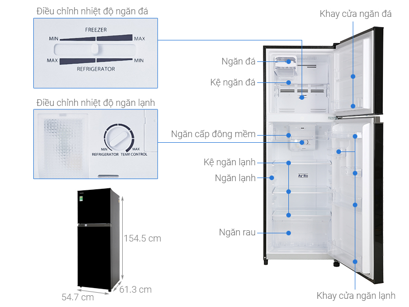 Tủ lạnh còn sở hữu dung tích 233 lít phù hợp với gia đình có 2-3 thành viên.