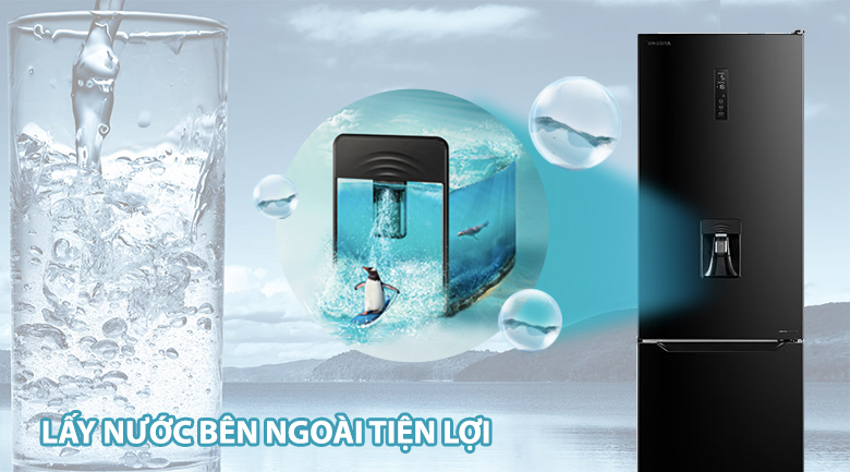 Tủ lạnh Toshiba Inverter 294 lít GR-RB385WE-PMV(30)-BS được thiết kế hệ thống lấy nước bên ngoài, giúp bạn nhanh chóng rót và uống nước lạnh để giải tỏa cơn khát ngay lập tức mà không cần phải mở cửa tủ lạnh. Đồng thời, nhà sản xuất còn thiết kế thêm bộ phận khóa vòi nước, tiện lợi cho những gia đình có trẻ nhỏ, phòng trường hợp trẻ nghịch phá