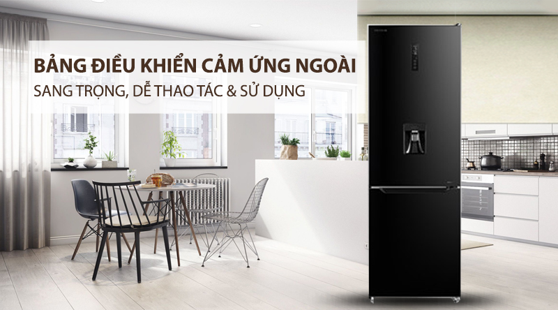 Bảng điều khiển được nhà sản xuất dời ra phía ngoài, nằm trên cánh cửa tủ lạnh Toshiba GR-RB385WE-PMV(30)-BS ở vị trí dễ nhìn thấy. Ngoài ra, với kiểu thiết kế cảm ứng sang trọng còn giúp cho người dùng nhanh chóng điều chỉnh nhiệt độ cũng như thực hiện các chức năng của thiết bị dễ dàng hơn.