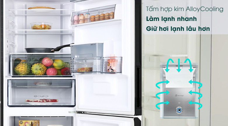 Tấm hợp kim giữ nhiệt Alloy Cooling thường được bố trí ở mặt sau tủ lạnh, hỗ trợ khả năng làm lạnh nhanh và giúp duy trì nhiệt độ bên trong tủ lạnh