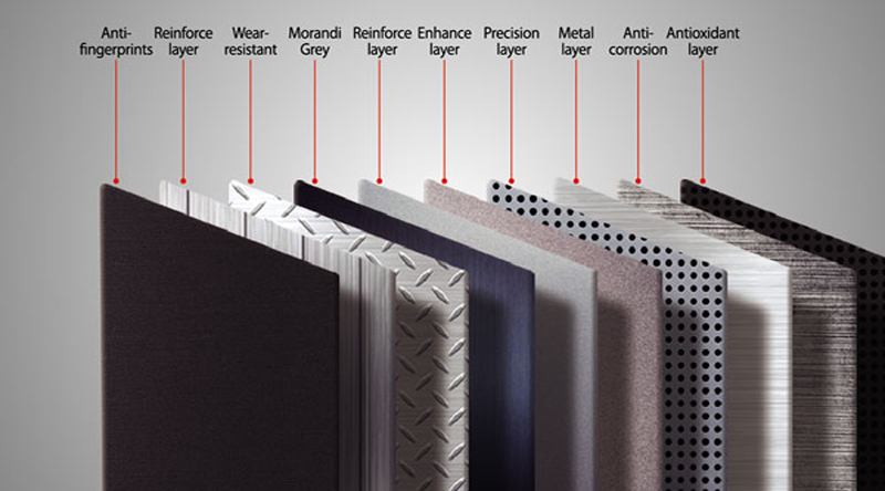 Bề mặt tủ được hoàn thiện tối ưu với 10 lớp vật liệu cao cấp xếp chồng. Cho vẻ ngoài tủ sang trọng tinh tế, chống bám vân tay và hạn chế trầy xước.