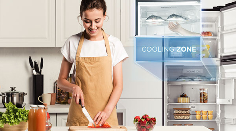 Ngăn COOLING ZONE giúp bảo quản thịt cá 1 đến 2 ngày mà không cần rã đông. Chế biến thuận tiện hơn và giữ nguyên hương vị.