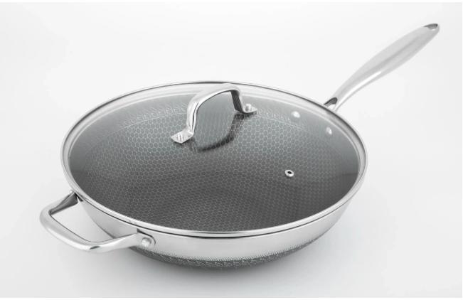 Chảo tổ ong chống dính B-GEM BG-02C thiết kế 3 đáy dày dặn, bạn có thể nấu trên mọi loại bếp vì chảo nồi cao cấp này không kén bếp như những chảo inox khác. Chảo được làm bằng inox 304 cao cấp, sáng bóng, không biến dạng bởi nhiệt độ cao hay va đập mạnh, an toàn cho sức khỏe, thân thiện với môi trường. Sản phẩm thiết kế tay cầm thanh mảnh, chắc chắn nhưng không cách nhiệt để di chuyển không bị nóng, bỏng, bạn nên dùng thêm miếng lót tay cầm, nắp đậy thiết kế vừa vặn với nồi, dễ vệ sinh. Sản phẩm có đáy phẳng hấp thu nhiệt nhanh, tỏa nhiệt đều, nấu ăn tiết kiệm thời gian, năng lượng tối ưu.