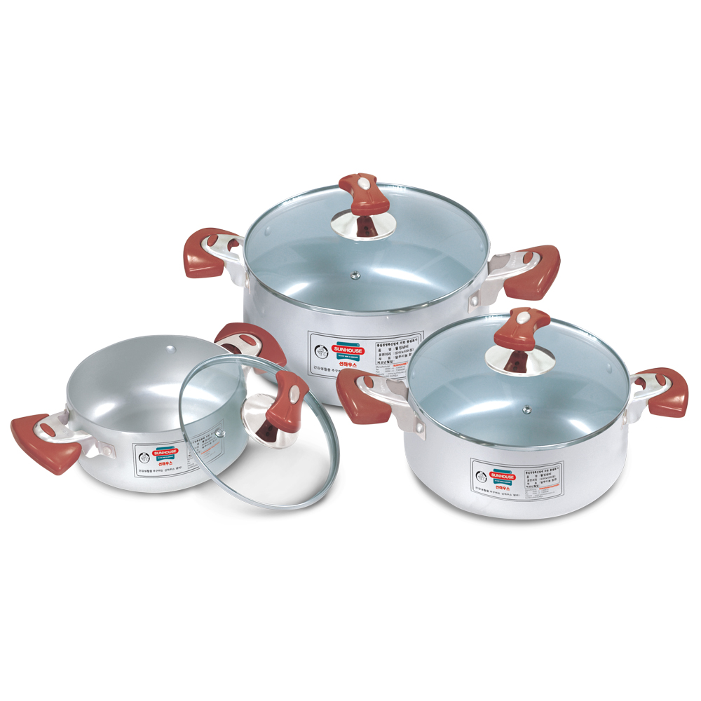 BỘ NỒI ANOD 3 CHIẾC MÀU BẠC QUAI EB ĐỎ SH8833EB
