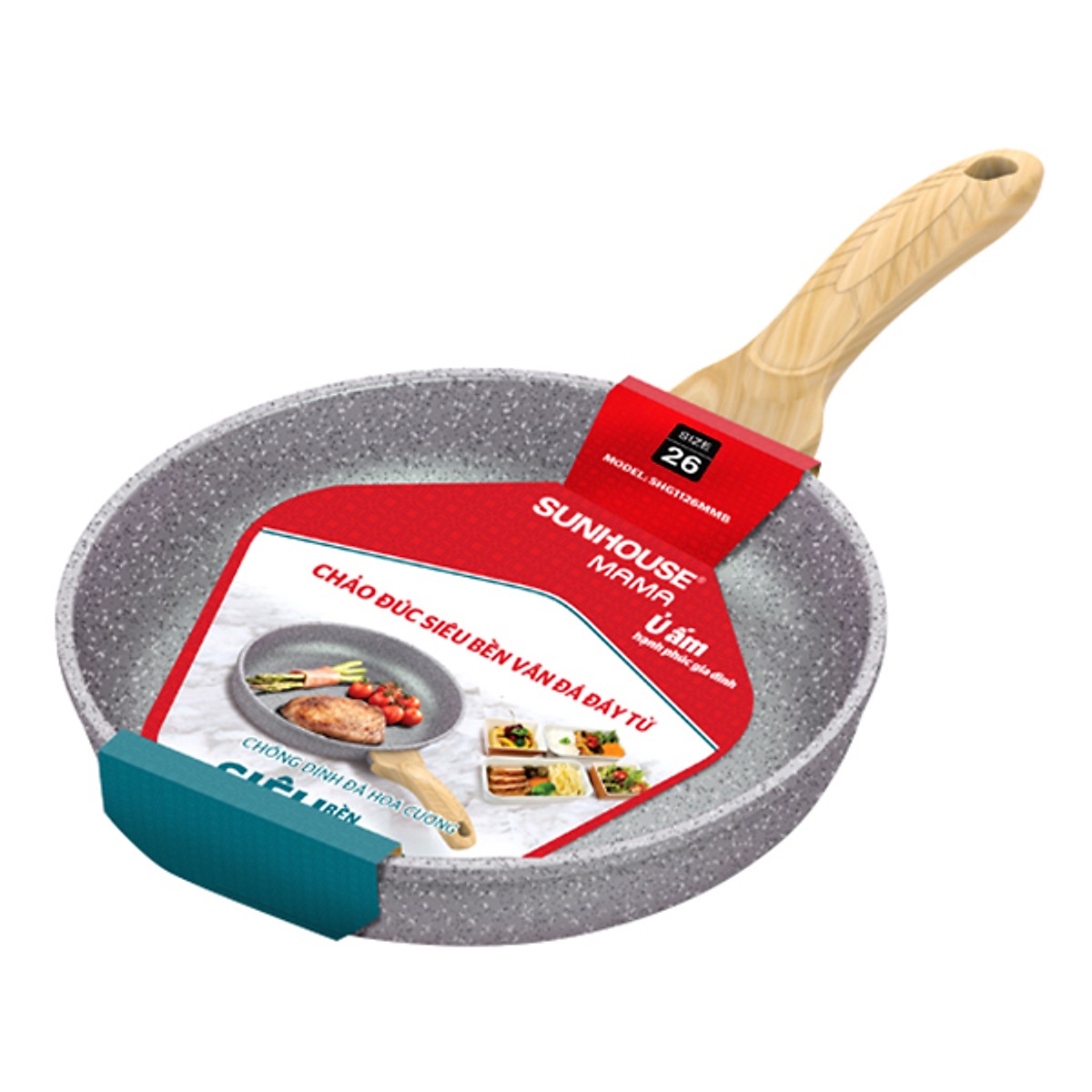 SUNHOUSE MAMA là dòng sản phẩm An toàn & Tinh tế cho căn bếp hiện đại, bao gồm nhiều mẫu mã sản phẩm từ gia dụng, thiết bị nhà bếp, điện gia dụng. Trong số đó, chảo đúc siêu bền vân đá đáy từ SUNHOUSE MAMA SHG1126MMB nổi bật bởi thiết kế hiện đại và khả năng chống dính siêu bền, dẫn nhiệt tốt, an toàn tuyệt đối cho sức khỏe và dùng được cho mọi loại bếp.
