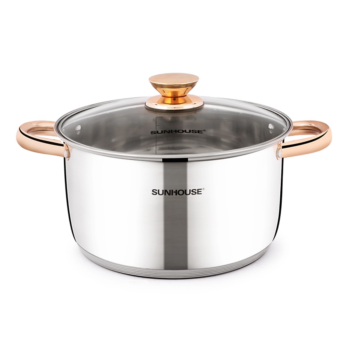 Nồi inox 5 đáy SUNHOUSE SHG24224 sử dụng được với mọi loại bếp, kể cả bếp từ. Sản phẩm với đường kính 24cm, phù hợp để nấu canh, nấu súp, nấu lẩu, luộc gà và chế biến thực phẩm dành cho 2-4 người.