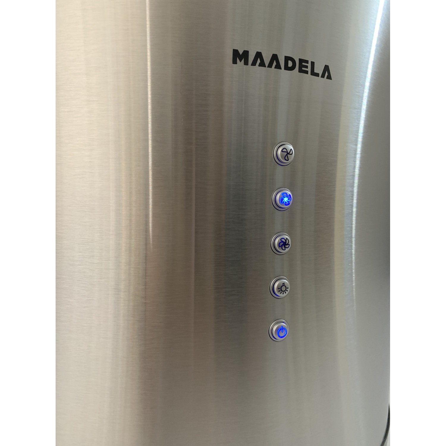 Máy hút khói Maadela điều khiển bằng phím bấm bán điện tử, dễ dàng lựa chọn theo ý thích của mình. Máy hút và khử mùi trực tiếp bằng than hoạt tính hoặc đẩy ra ngoài bằng đường ống thoát với kích thước 150mm, máy có kích thước 380mm không chiếm quá nhiều không gian bếp của gia đình bạn.