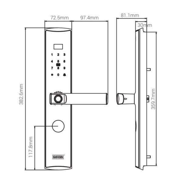 • Chức năng mở khóa: Vân tay, Mật khẩu, Thẻ từ, App wifi, Chìa khóa cơ
