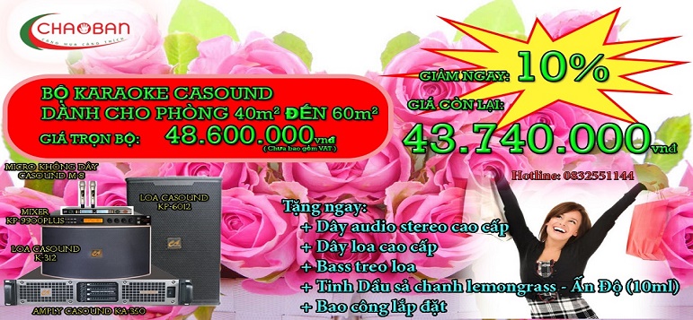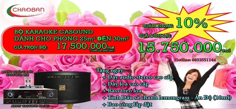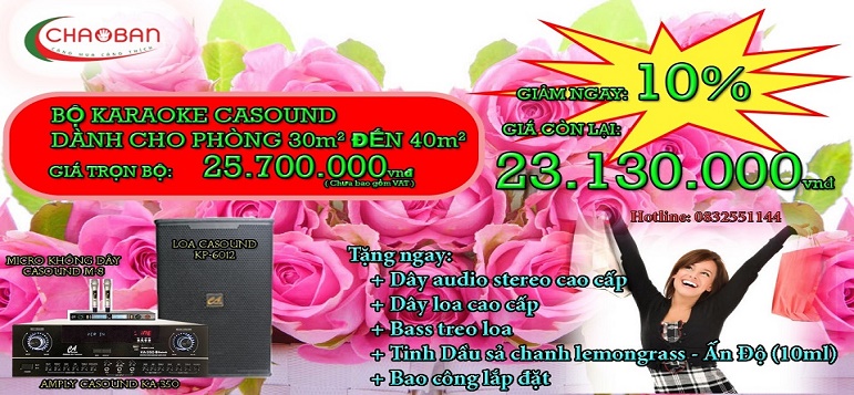 Nhân dịp ngày Quốc Tế Phụ Nữ 8/3 Công Ty CP TM-DV Chào Bán tạo ra nhiều Combo Karaoke Khuyến Mãi dành riêng cho đấng mày râu để trao tặng người Phụ Nữ mà mình yêu quí nhất có một giọng ca tuyệt vời bên dàn âm thanh đỉnh cao.