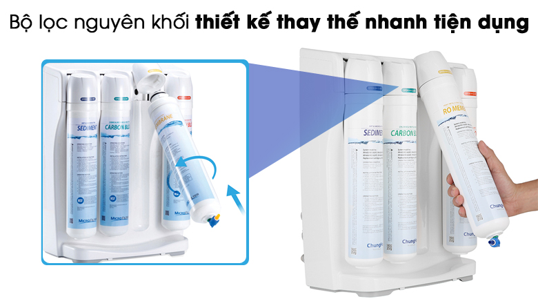 Bộ lọc nguyên khối đạt chuẩn chuẩn NSF 58, cấu tạo thay thế nhanh tân tiến dễ dàng tháo lắp với các ngàm cố định