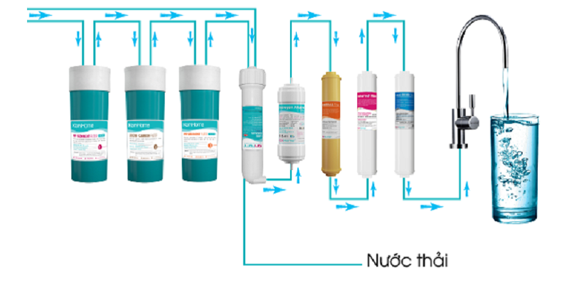 Hệ thống 7 lõi lọc cao cập khép kín, với màng RO được nhập từ Mỹ