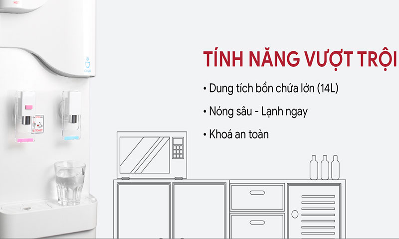 Dung tích bình chứa lớn: 8.0 lít cho bồn chờ, 3.0 lít cho bồn nóng, 3.0 lít cho bồn lạnh đảm bảo lượng nước sử dụng cho cả gia đình, văn phòng làm việc cả ngày dài.