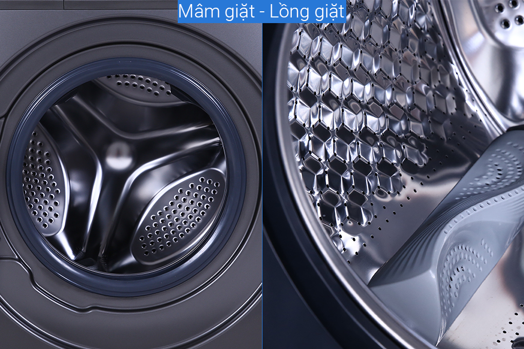 Với bề mặt được thiết kế bởi những gờ nổi dạng tinh thể pha lê cùng 2,196 lỗ phun nước giúp tăng cường hiệu quả chà xát và giũ quần áo nhẹ nhàng. Ngoài ra, lỗ phun nước với đường kính siêu nhỏ chỉ 2.4 mm giúp bảo vệ quần áo tốt hơn sau nhiều lần giặt.