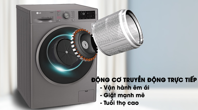 Máy giặt Inverter này là chiếc máy giặt truyền động trực tiếp, với thiết kế mới mẻ, loại bỏ cơ chế truyền động thông qua dây curoa với động cơ được gắn trực tiếp vào trong lồng giặt nên khi động cơ quay thì lồng giặt cũng quay theo. Nhờ đó mà máy giặt giúp tiết kiệm điện năng, hạn chế tiếng ồn và nâng cao độ bền theo năm tháng.