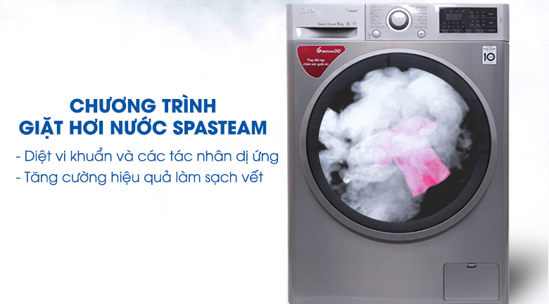 Máy giặt LG FC1408S3E được trang bị chương trình giặt hơi nước SpaSteam độc quyền, với chế độ này nước được đôi sôi phun hơi trực tiếp vào quần áo giúp diệt khuẩn, làm mềm sợi vải, bảo vệ tốt nhất cho làn da nhạy cảm.