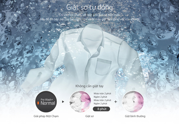 Ngoài ra còn hỗ trợ tính năng giặt sơ tự động, chỉ với một chạm, vết bẩn khó giặt sẽ biến mất.