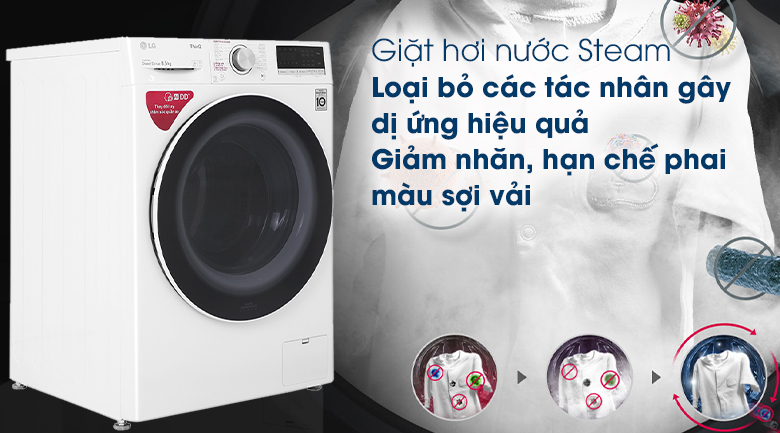 Mẫu máy giặt LG còn nhanh chóng loại bỏ bụi bẩn, mạt bụi trong khi giặt, hiệu quả đến 99.9%, bảo vệ gia đình bạn khỏi các triệu chứng dị ứng hoặc các vấn đề về hô hấp.