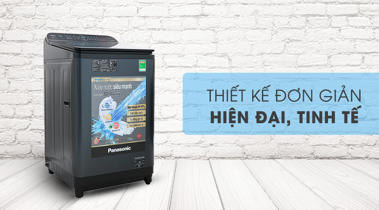 Máy giặt này gây ấn tượng bởi phần thiết kế kiểu lồng đứng sang trọng, cùng với bảng điều khiển tiếng Việt đặt phía sau, giúp cho người dùng dễ quan sát và sử dụng hơn.