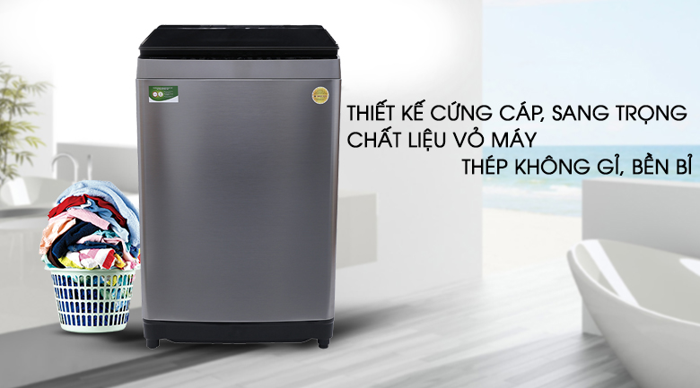 Máy giặt Toshiba AW-DUG1700WV(SS) có thiết kế cửa trên quen thuộc, bảng điều khiển dạng nút nhấn có hỗ trợ tiếng Việt đi cùng màn hình hiển thị thân thiện, giúp người tiêu dùng dễ dàng thao tác, sử dụng máy. Ngoài ra, nắp máy giặt còn được trang bị hệ thống trợ lực an toàn.