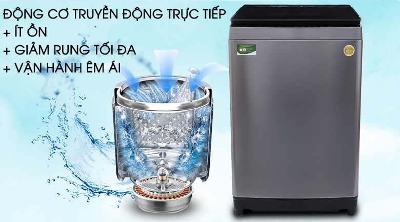 Nhờ có sự truyền lực trực tiếp từ động cơ đến lồng giặt nên máy sẽ tiết kiệm điện năng tốt, vận hành êm ái, bền bỉ hơn.