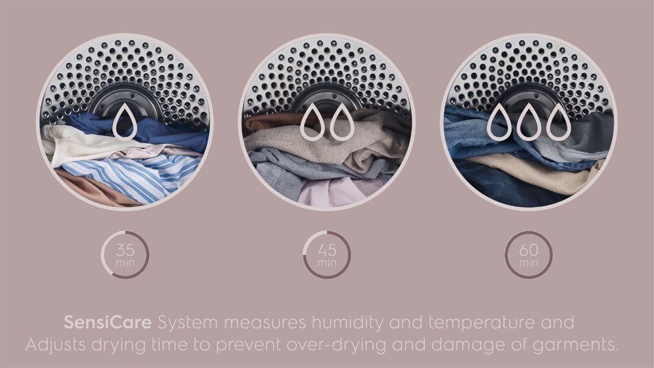 Hệ thống SensiCare của Máy Sấy Ngưng Tụ Electrolux 8 kg EDC804CEWA sử dụng các cảm biến nhiệt độ và độ ẩm để đảm bảo các vật phẩm giữ được vẻ ngoài và cảm giác lâu hơn. Bằng cách điều chỉnh mức tiêu thụ năng lượng và thời gian chu kỳ theo kích cỡ tải và loại vải, SensiCare giảm hao mòn bằng cách bảo vệ quần áo của bạn khỏi quá khô.