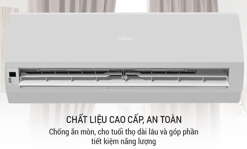 Máy lạnh Aqua AQA-KCR9JA sử dụng các ống đồng ở dàn nóng, có độ bền cao hơn các vật liệu thông thường khác. Các lá nhôm tản nhiệt ở dàn nóng được phủ lớp chống ăn mòn màu xanh, cho tuổi thọ dài lâu và góp phần tiết kiệm năng lượng.