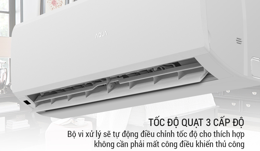 Aqua AQA-KCR9JA có tốc độ quạt gió ở 3 cấp độ: thấp - trung bình - cao. Khi máy hoạt động, bộ vi xử lý sẽ tự động điều chỉnh các tốc độ quạt này dựa vào nhiệt độ phòng để giúp bạn có được luồng không khí thích hợp nhất mà không cần phải mất công điều khiển thủ công.
