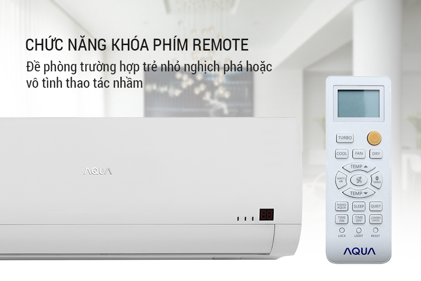 Với chức năng khóa remote tiện lợi, các phím điều khiển trên remote sẽ bị vô hiệu hóa, đề phòng trường hợp trẻ nhỏ nghịch phá hoặc bạn vô tình thao tác nhầm làm thay đổi các chế độ đã cài đặt.