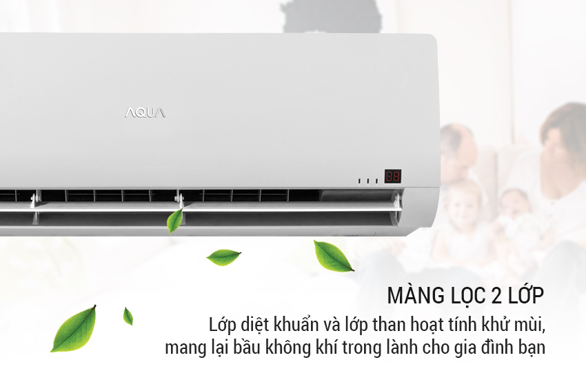 Máy lạnh Aqua AQA-KCRV12WGSA sử dụng hệ thống kháng khuẩn bằng lưới lọc 2 lớp bao gồm: lớp diệt khuẩn và lớp than hoạt tính khử mùi, loại bỏ nhân tố độc hại... giúp lọc sạch vi khuẩn và những mùi hôi khó chịu trong không khí, mang lại bầu không khí trong lành cho gia đình bạn.