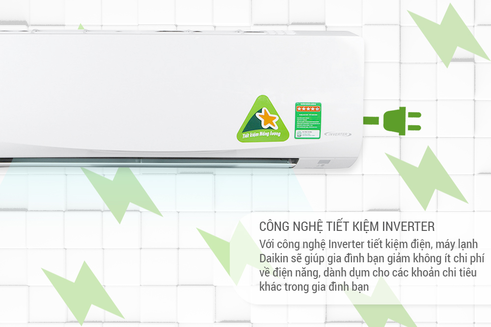 Với công nghệ Inverter tiết kiệm điện, máy điều hòa Daikin sẽ giúp gia đình bạn giảm không ít chi phí về điện năng, dành dụm cho các khoản chi tiêu khác trong gia đình bạn.