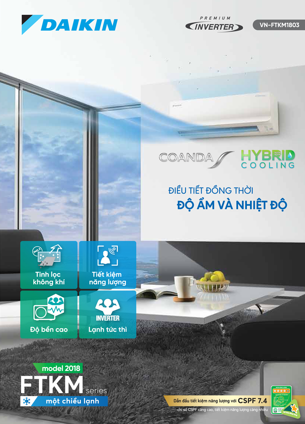 Máy lạnh Daikin duy trì độ ẩm ở mức 55% - 65% giúp phòng bệnh hô hấp, tiết kiệm điện năng và bảo vệ nội thất trong nhà. Công nghệ Hybrid Cooling của Daikin giúp cân bằng độ ẩm ngay cả khi làm lạnh ở tải thấp bằng cách cải tiến bộ trao đổi nhiệt của dàn lạnh sang chế độ khử ẩm bất kỳ lúc nào