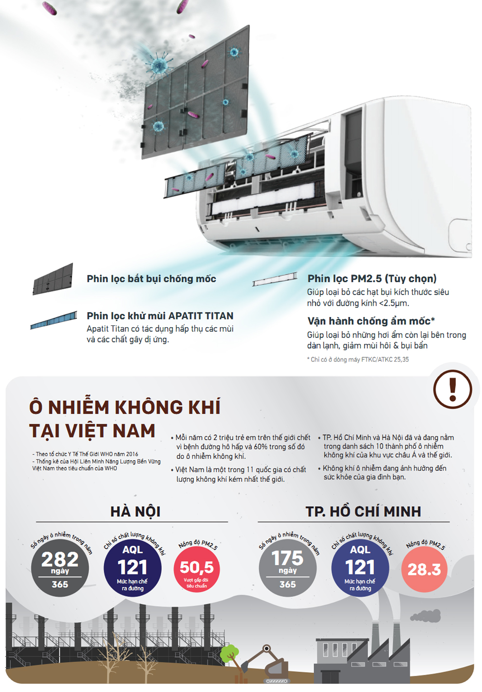 Để ứng phó với tình trạng biến đổi khí hậu, Daikin đã sử dụng R-32 – Môi chất lạnh thế hệ mới, không gây suy giảm tầng ozone và có chỉ số làm nóng trái đất thấp hơn.