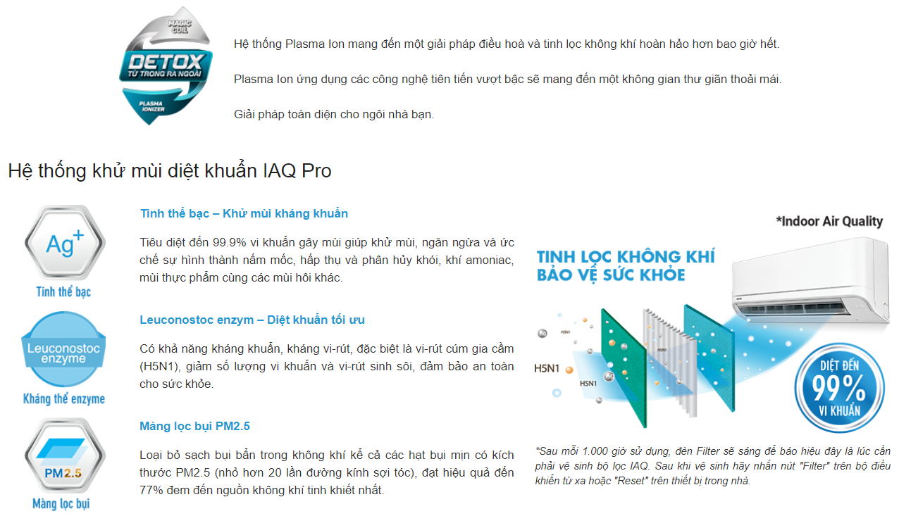Diệt khuẩn, lọc bụi tối ưu với công nghệ lọc khí Plasma ion