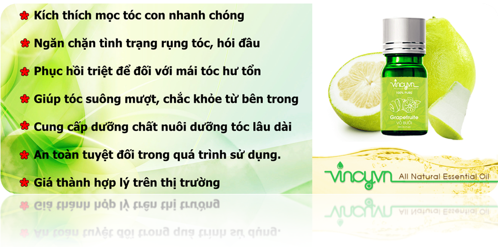 **** Lưu ý : Khi sử dụng tinh dầu bưởi đối với người bị nấm da đầu, cần điều trị bệnh nấm da đầu trước khi thoa tinh dầu thiên nhiên.