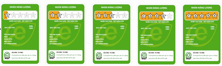 Có 5 mức xếp hạng tiết kiệm điện trên máy lạnh tương ứng với 5 sao trên nhãn năng lượng. Nhãn 5 sao là nhãn có hiệu suất năng lượng tốt nhất cho thấy khả năng tiết kiệm điện nhất.