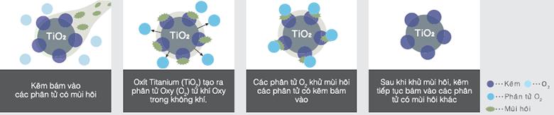 Công nghệ Nano Titanium sử dụng chất xúc tác TiO2 giúp tiêu diệt hiệu quả vi khuẩn và lọc sạch nấm mốc, mùi hôi. Những phân tử Nano Titanium này có kích thước cực kỳ nhỏ (khoảng 5nm). Nếu tưởng tượng đường kính của trái đất là 1 mét thì 5nm chỉ tương đương kích thước quả banh golf so với trái đất.